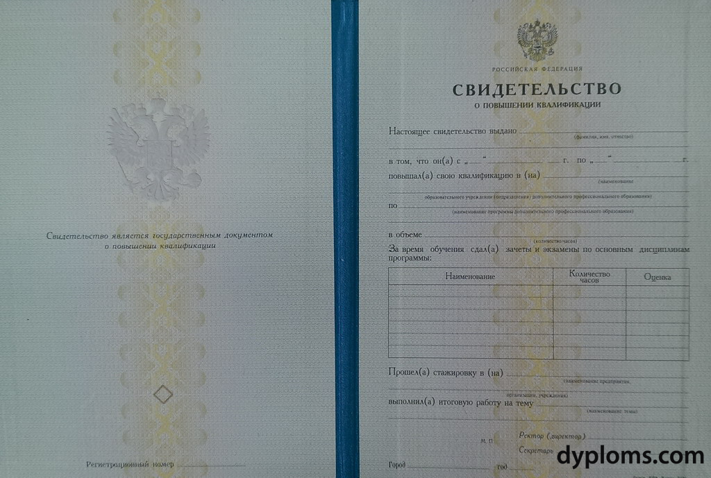 Пример свидетельства о повышении квалификации, которое изготавливают наши специалисты, доступен для просмотра на сайте. А сам документ, бланк которого представлен на этой странице, легко приобрести, связавшись с нами.